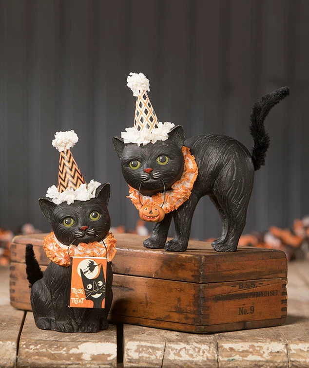 - Resin figures with chenille tails, crepe accents, paper party hats and bags