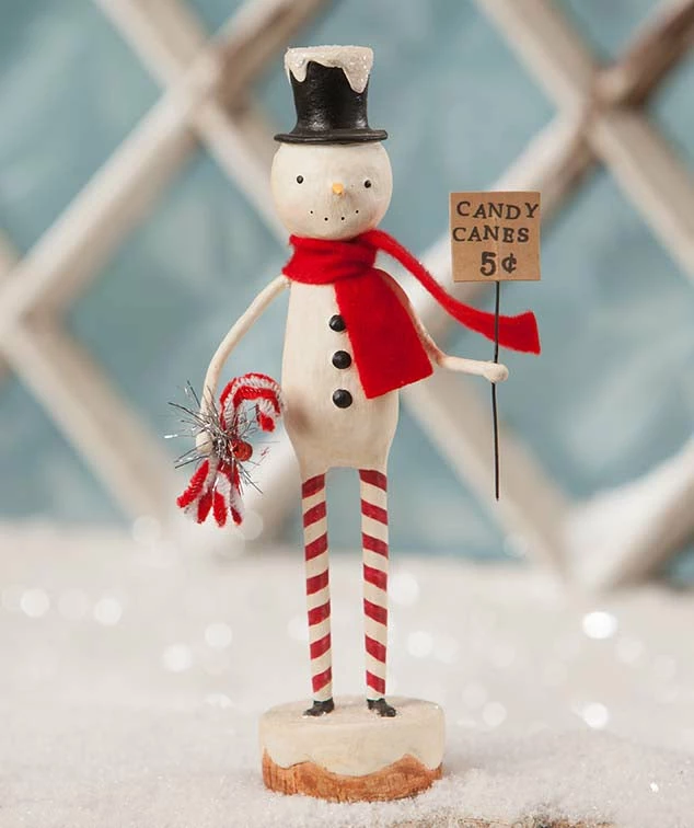 Conceive a creative holiday scene with this imaginative Candy Canes for Sale Snowman designed by artist Michelle Lauritsen.