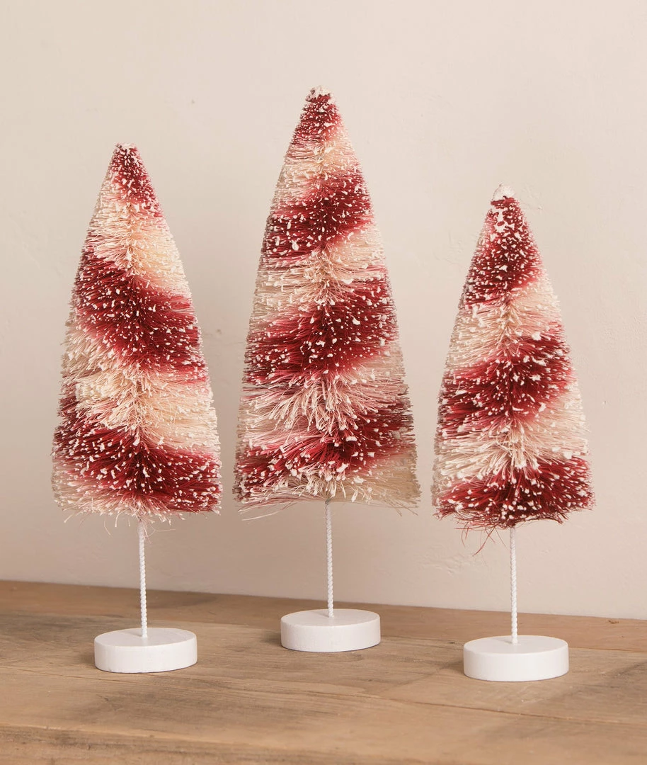 Bring whimsy to your holiday decorating with these fun Candy Cane Swirl Bottle Brush Trees.