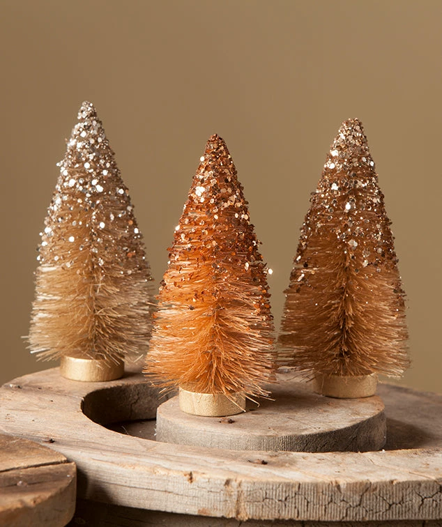 Give your fall decorating a touch of sparkle with these natural bottle brush trees with glitter accents.