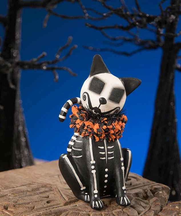 Skelly Cat is so cool in his Day of the Dead costume. He knows what not to wear and how to put it all together. Skelly cat is Halloween party-ready.