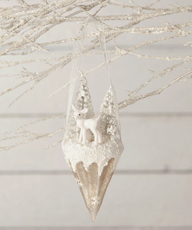 Trim your tree with delight with this winter wonderland scene with deer.