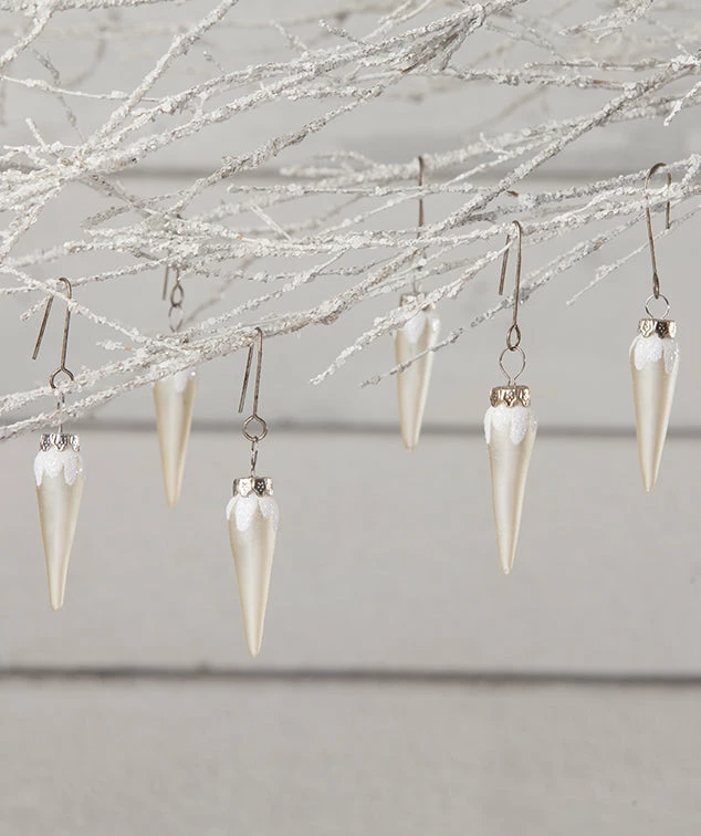 Create a winter wonderland with these White Pearl Icicle Mini Ornaments, perfectly sized for small trees.