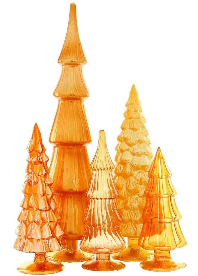 Give your holiday decorating designer style with these vibrant Yellow Orange Trees in varying hues, shapes and sizes.