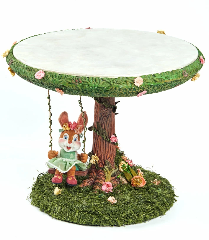 Create a playful center piece on your Easter buffet table with this darling bunny on a swing cake plate. Perfect for showing off your favorite Easter cupcakes or treats, yummy!