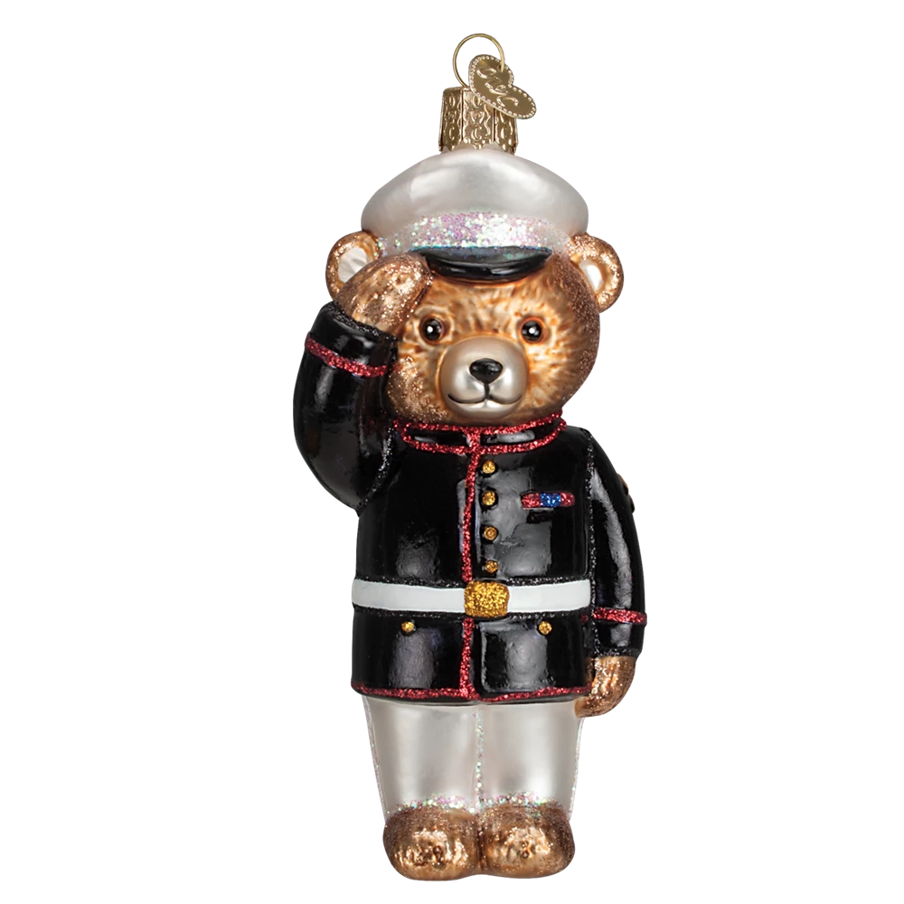 Honor a soldier or veteran with this saluting Marine Bear Ornament, which stands tall to salute the love of country.
