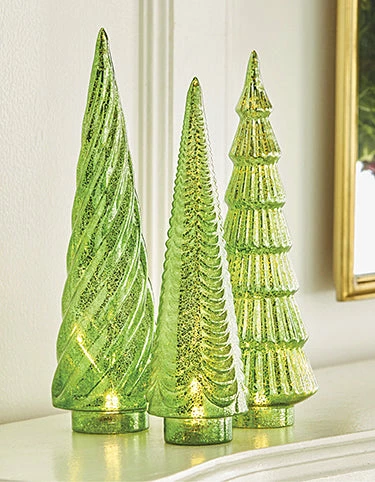 Give your home a festive feel with these Green Mercury Glass Trees that light up.