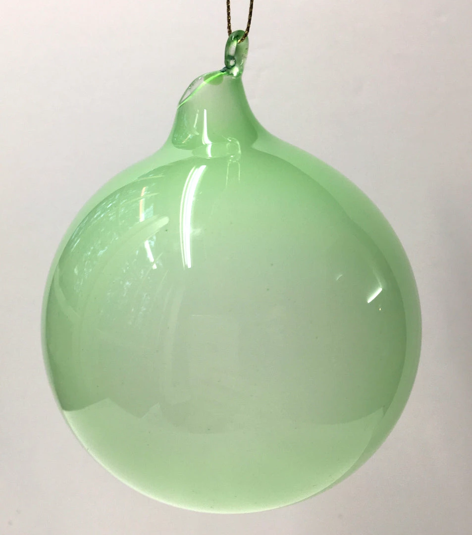 Personalize your holiday decor with these hand-blown Light Green Bubblegum Glass Ball Ornaments by designer Jim Marvin.