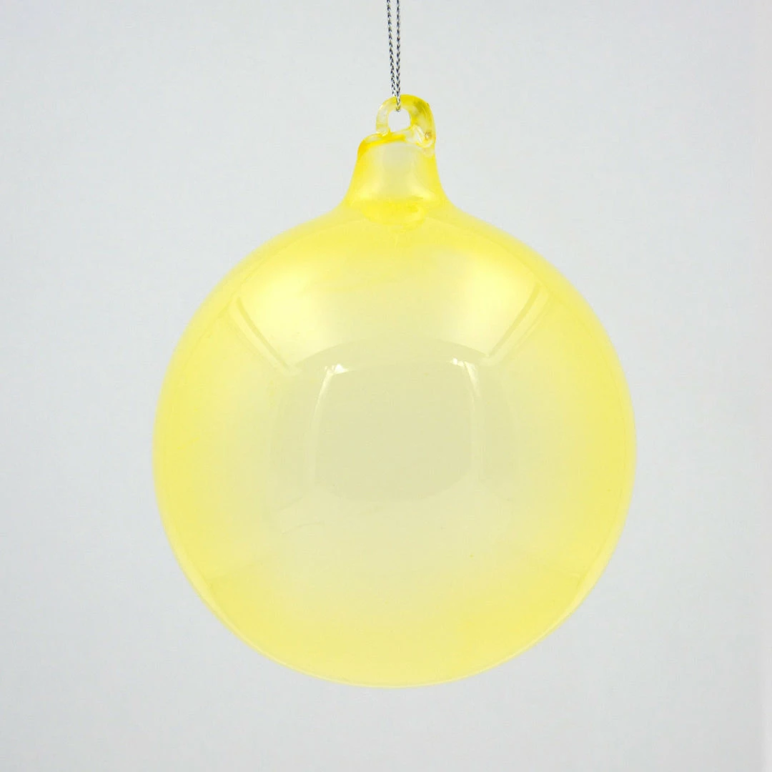 Personalize your holiday decor with these hand-blown Pale Yellow Bubblegum Glass Ball Ornaments by designer Jim Marvin.